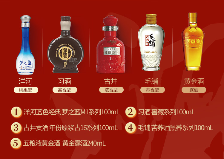 HE小酒 JOY纪念版 洋河+习酒+古井贡酒+劲牌+黄金酒 大牌畅饮盒